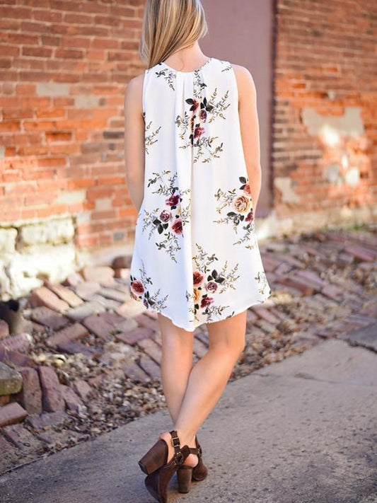 Beautiful White Bohemia Floral Sleeveless V Neck Mini Dress