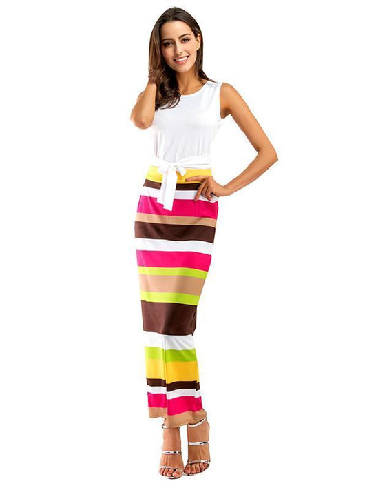 Two Pieces Stripe Sleeveless Beach Dress Maxi Dress