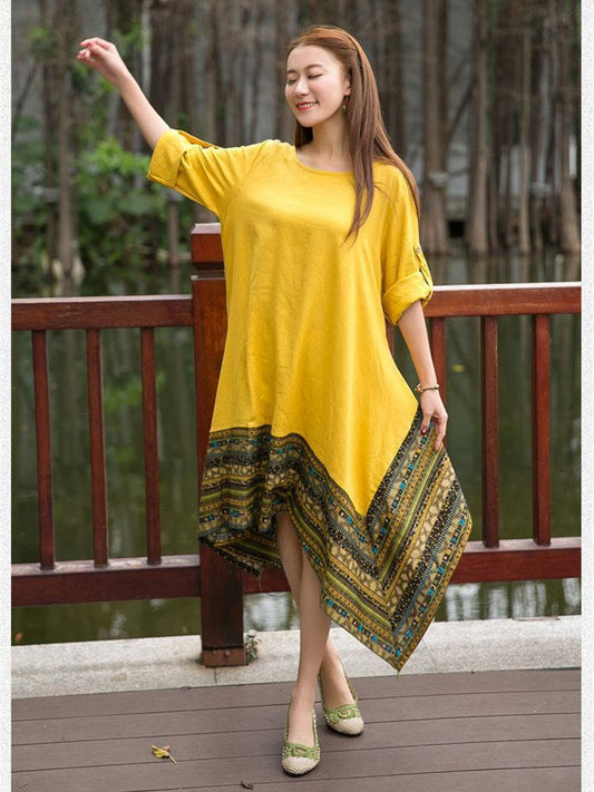 Autumn Asymmetric Retro Round-neck Half Sleeve Midi Dress