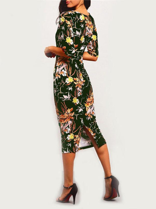 Pretty Floral Half Sleeve Round Neck Bodycon Maxi Dress