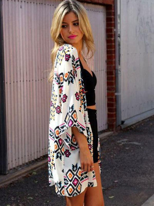 Chiffon Arrow Print White Bohemia Beach Mini Cover-Up Swimwear