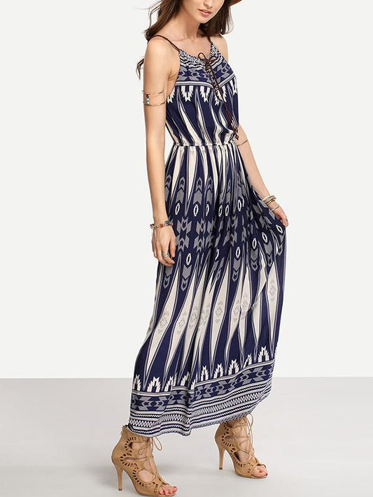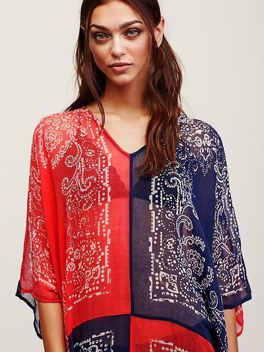 Chiffon Bohemia Red and Blue Maxi Beach Dress