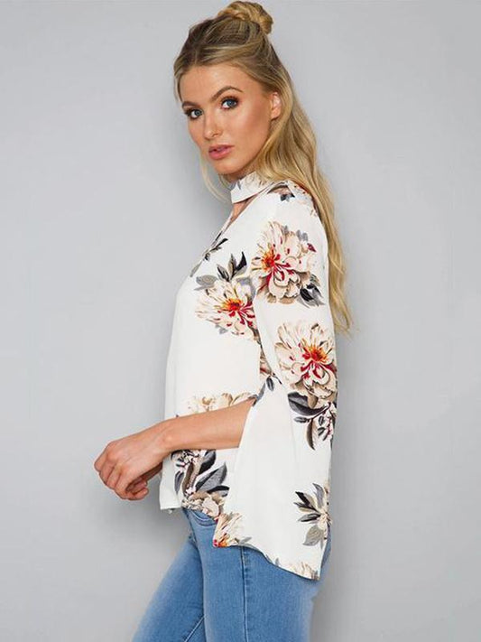 Women's Mesh Small Flower Chiffon Shirt, Women's Spring/summer Round Neck Slimming Pullover Long Sleeved Top