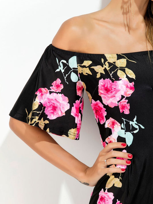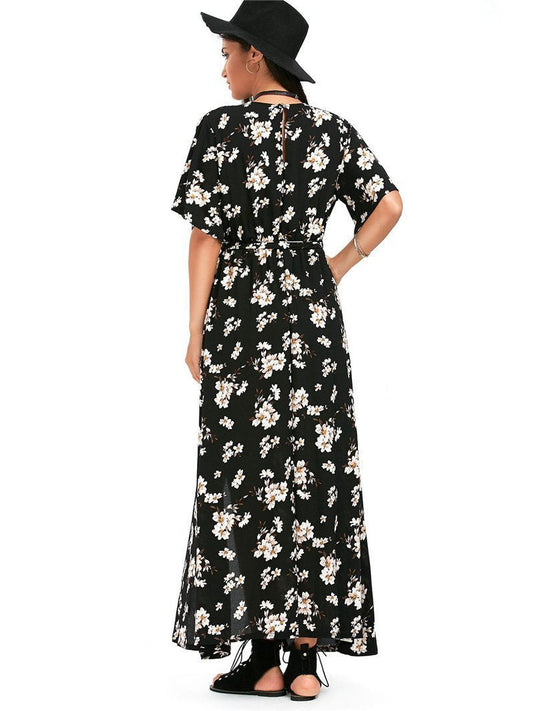 Floral Print V-neck Split-front Bohemia Maxi Dress
