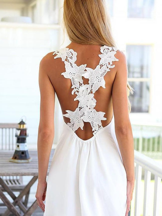 Floral Spaghetti-neck V-neck Backless Bohemia Maxi Dress