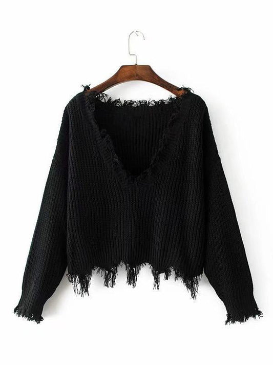Knitting V-neck Cropped Tasselled Sweater Tops