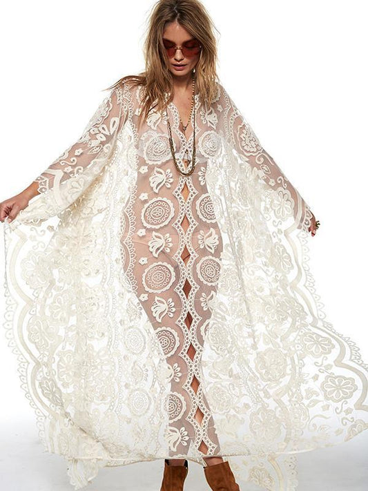 Fashion Sexy Mesh Lace V Neck Beach Maxi Dress