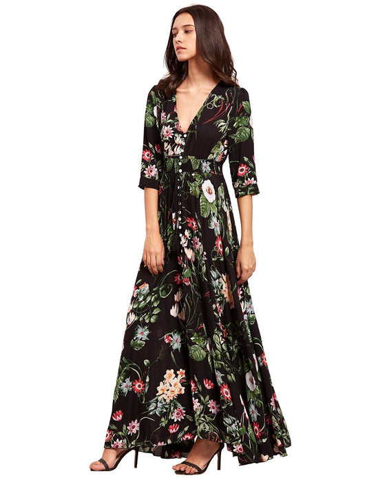 Printing Bohemia Deep V Neck Backless Beach Dress