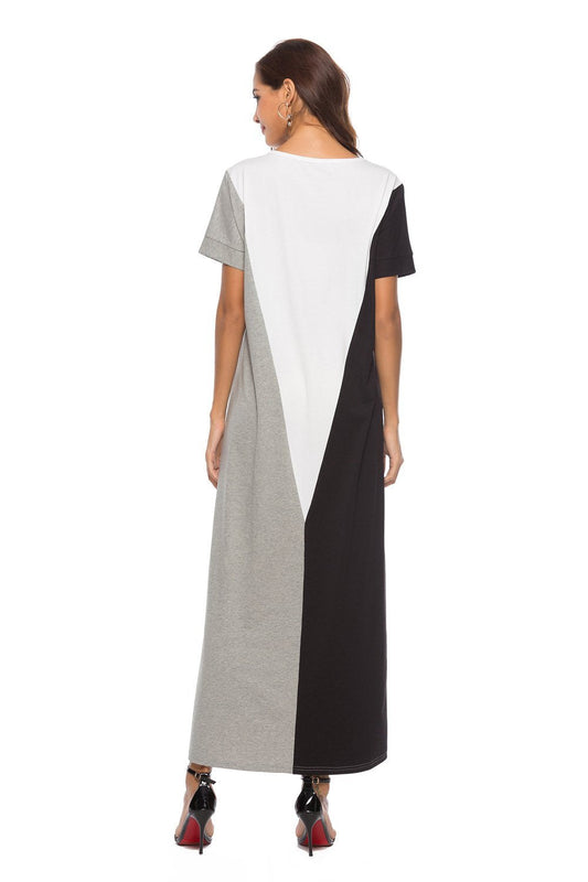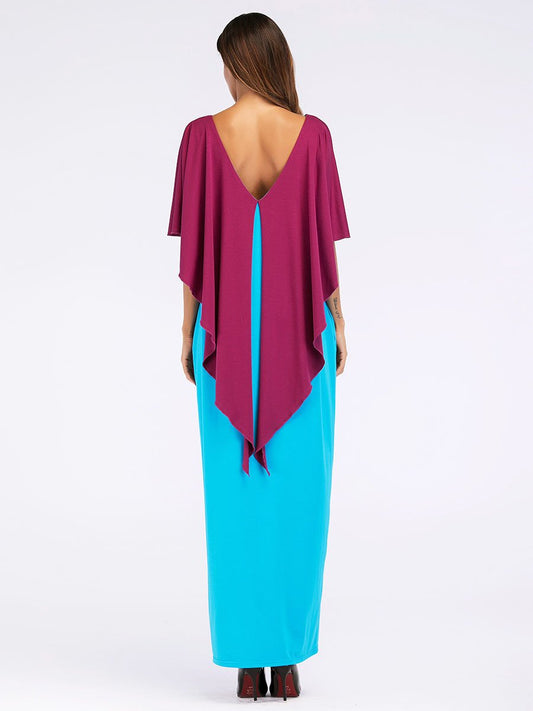 Fashion Contrast Color Asymmetry Cloak Patckwork Design Maxi Long Dress