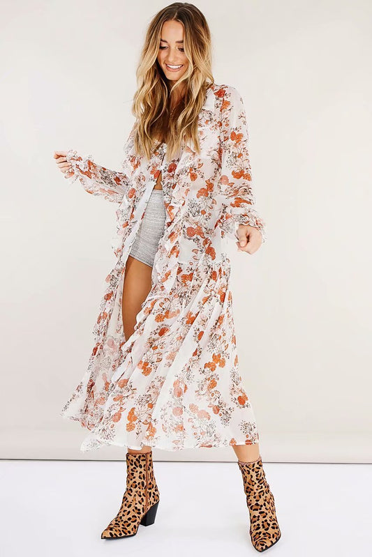 Floral Chiffon Long Sleeve Beach Maxi Dress