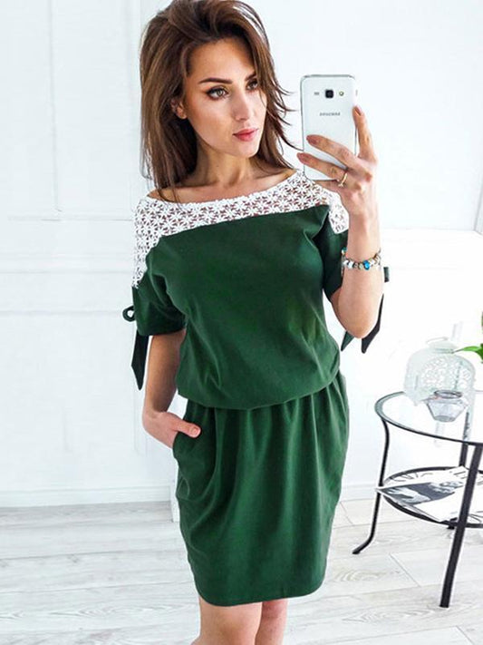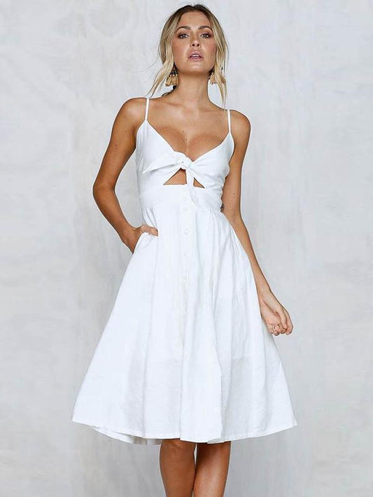 Spaghetti Strap Bowknot Solid Color Mini Dress