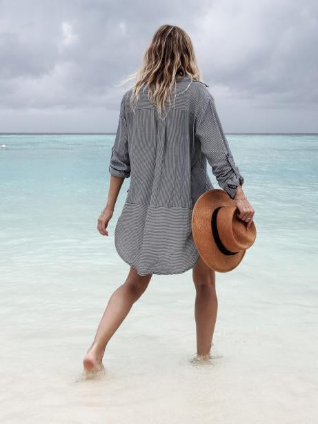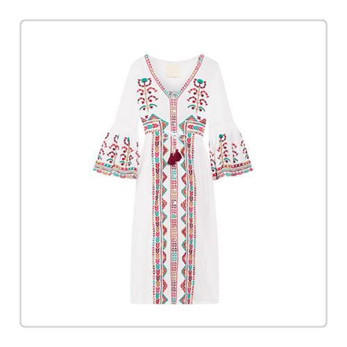 2018 Boho Embroidered Long Sleeve Loose Beach Dress