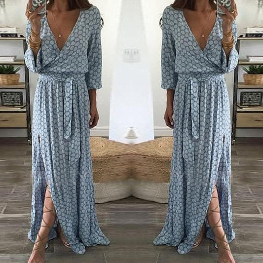 Bohemian Holiday V-neck Floral Sexy Split Dress
