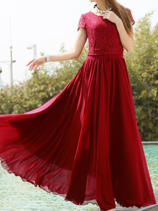 Elegant Solid Color Chiffon Short Sleeve Maxi Party Dress
