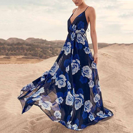 Floral Sleeveless Backless Elegant Party Maxi Party Dress