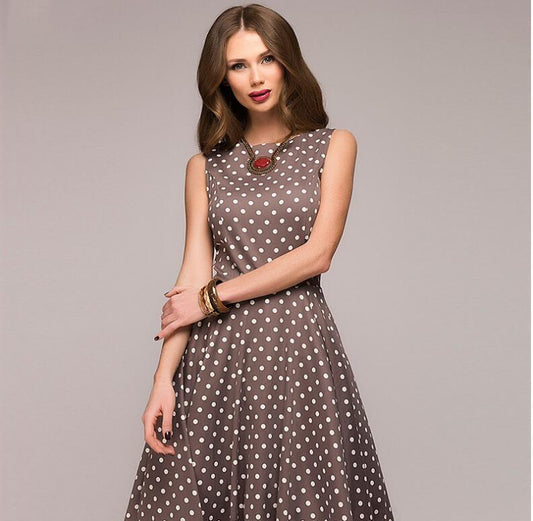 Polka Dot Sleeveless Summer Casual Midi Dress