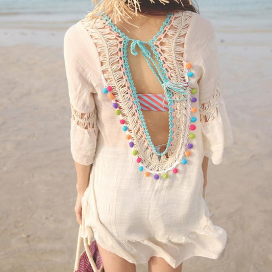 Bohemia Hollow Bikini Blouse Vacation Beach Mini Dress
