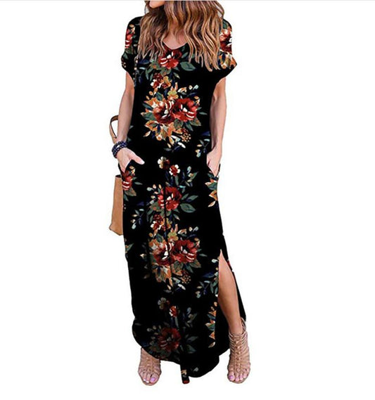 Bohemia Style Floral Summer Sling Dress Sexy V-neck Print Dress Beach Dress