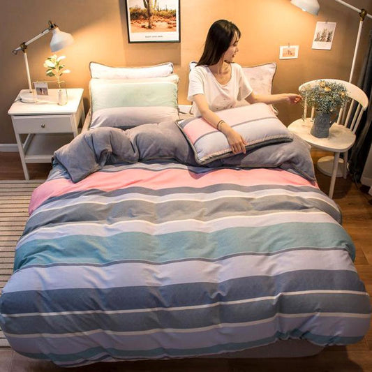 Thickened Warm Cotton and Flannel Quilt Cover Set of Four Single and Double Cotton Milk Flannel Blanket Set of Four