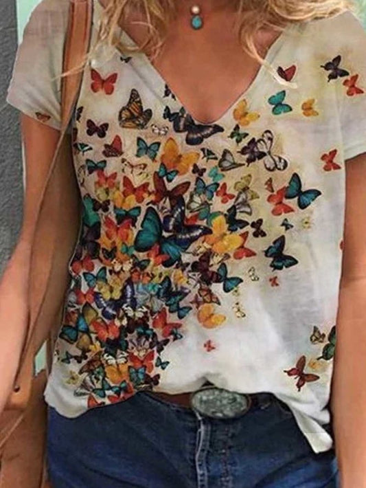 Ladies abstract flower oil painting Print Short Sleeve Top