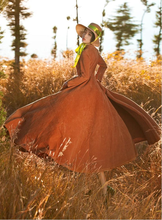 Big Hem High Waist Long Sleeve Corduroy Long Maxi Dress