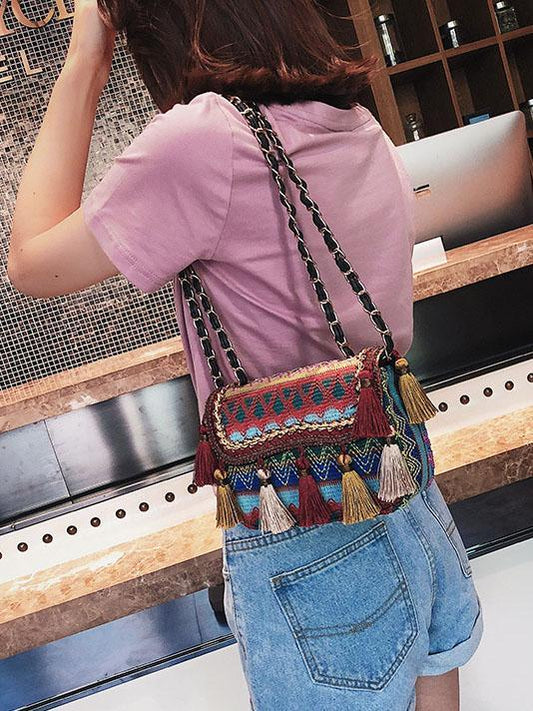 Ethnic Style Bohemian Big Hem V-neck Half Sleeve Dress