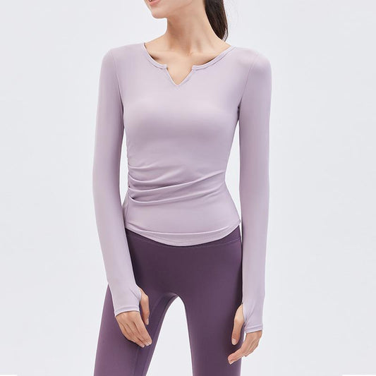 Yoga suit long sleeve T-shirt running top V-neck nude fitness top female