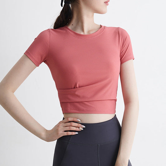 Solid Color Summer Tight Short Dew Umbilical Sports Top Women's Fast Dry Sexy Yoga Short-sleeved T-shirt Running Fitness Suit