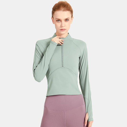 Fitness Yoga Wear Women's Stand-up Collar Zipper Slim Long Sleeve Outdoor Running Breathable Quick-drying Sports yoga top