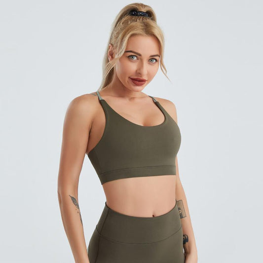 Women's sports vest running shockproof yoga fitness sports bra gather beautiful back cross shoulder strap sports bra