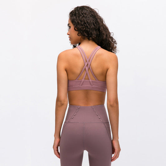 In Spring The New Sports Bra Women's Cross-beautiful Back Gathers and Runs Yoga Fitness Bra