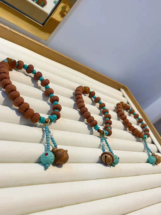 Lotus King Kong Bracelet with Meteorite Diamond Beads, Mahogany Bells