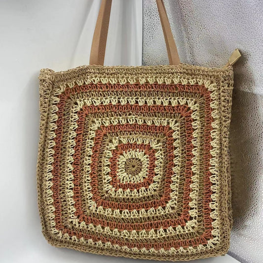 Summer Shoulder Fashion Woven Bag Beach Vacation Retro Casual Style Straw Woven Bag