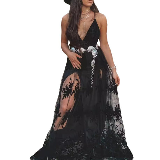 Women's Clothing, Amazon, Independent Station, Sleeveless V-neck Suspenders, Long Skirts, Dresses, Exposed Legs