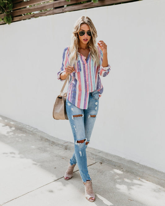 Fashion Colorful Striped Plus Size Long Sleeve Shirt