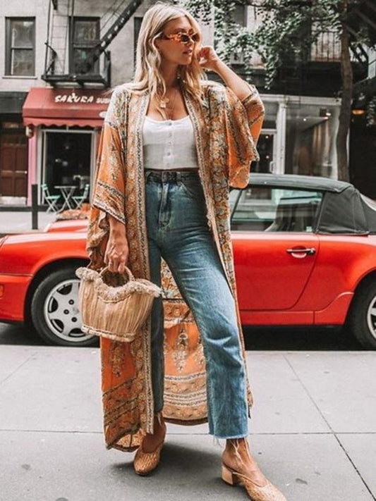 Bohemian Floral Print Women Long Sleeve Boho Cover-up