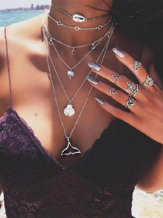 Boho Beach Mermaid Fish Tail Shell Crystal Beads Necklaces