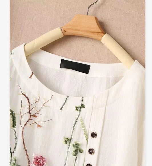 New Autumn Shirts Women's Loose Cotton Hemp Pullover Embroidered Round Neck Top Large Pullover White ShirtRegular price $22.99 USDRegular priceUnit price per$28.99 USDSale price $22.99 USDSale