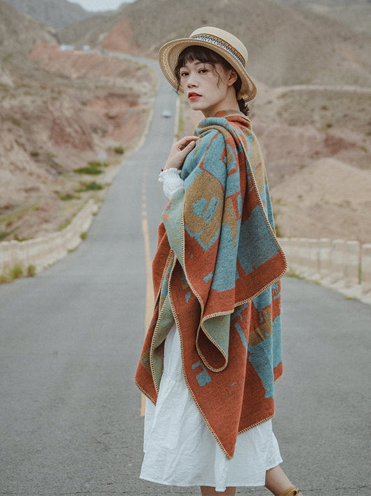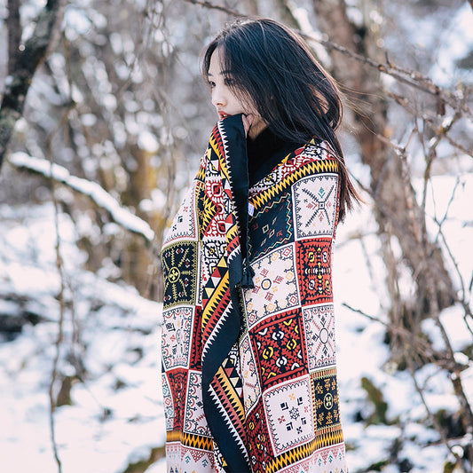 Thickened Autumn and Winter Scarf Versatile Retro Ethnic Warm Shawl Cloak