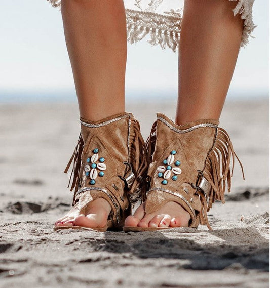 Summer Flat Bottomed Fringed Handmade Beaded Women's Sandals