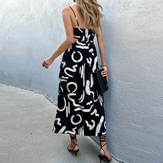Summer Leopard Print Hanging Neck Irregular Split Dress
