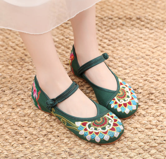 Canvas embroidered cloth shoes women's shoes single shoe one-line buckle low heel