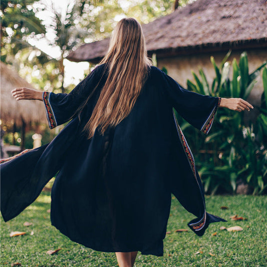 Embroidered beach blouse sexy cardigan loose vacation dress bikini blouse