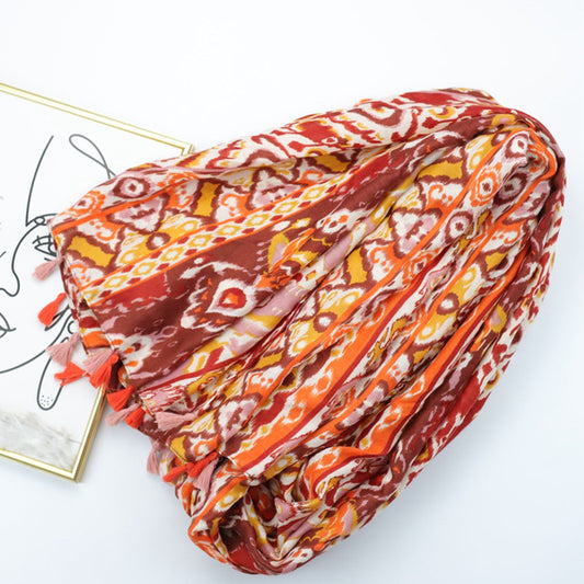 Vintage ethnic style cotton linen scarf women's geometric floral fringe shawl woman