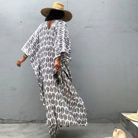 Beach blouse oversized loose fit bat sleeve resort dress