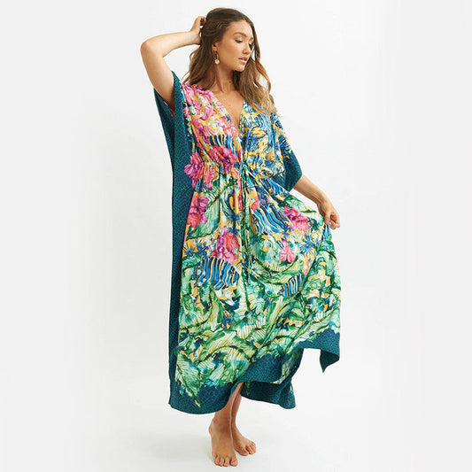Women's deep V neckline fashion beach sunscreen swimsuit shirt dress