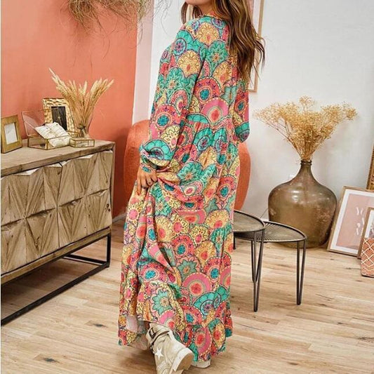 New semi-high neck fashion print fairy skirt lantern sleeve dress
