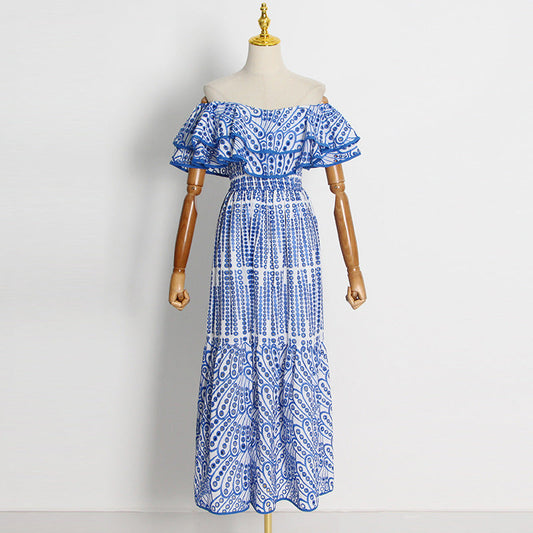 Summer lace-up ruffled bohemian sexy off-the-shoulder maxi dress for women
