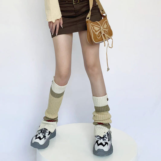 Autumn/winter vintage button opening British American college babes color block contrast stacked knitted sweater leg oversocks