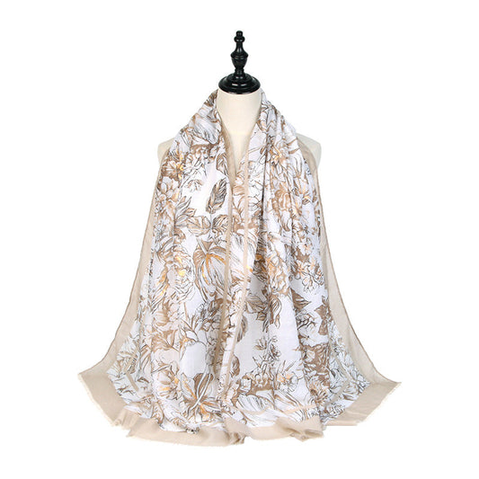 Autumn and winter new satin printing spring orchid autumn chrysanthemum outdoor ladies warm shawl scarf